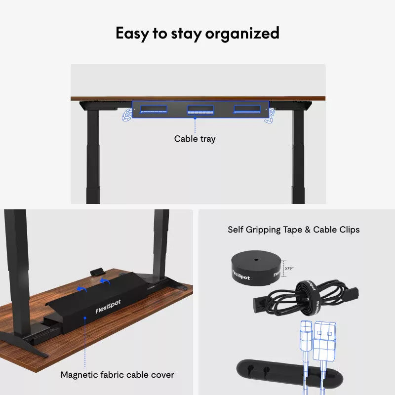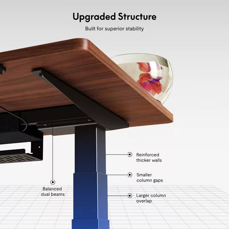 Más álló íróasztalok stabilitási problémákkal küzdenek, mivel rövidebb, átfedő csőlábak vannak. Az E7 Pro meghosszabbított, átfedő csőlábai szilárdabb alapot biztosítanak a munkanaphoz.